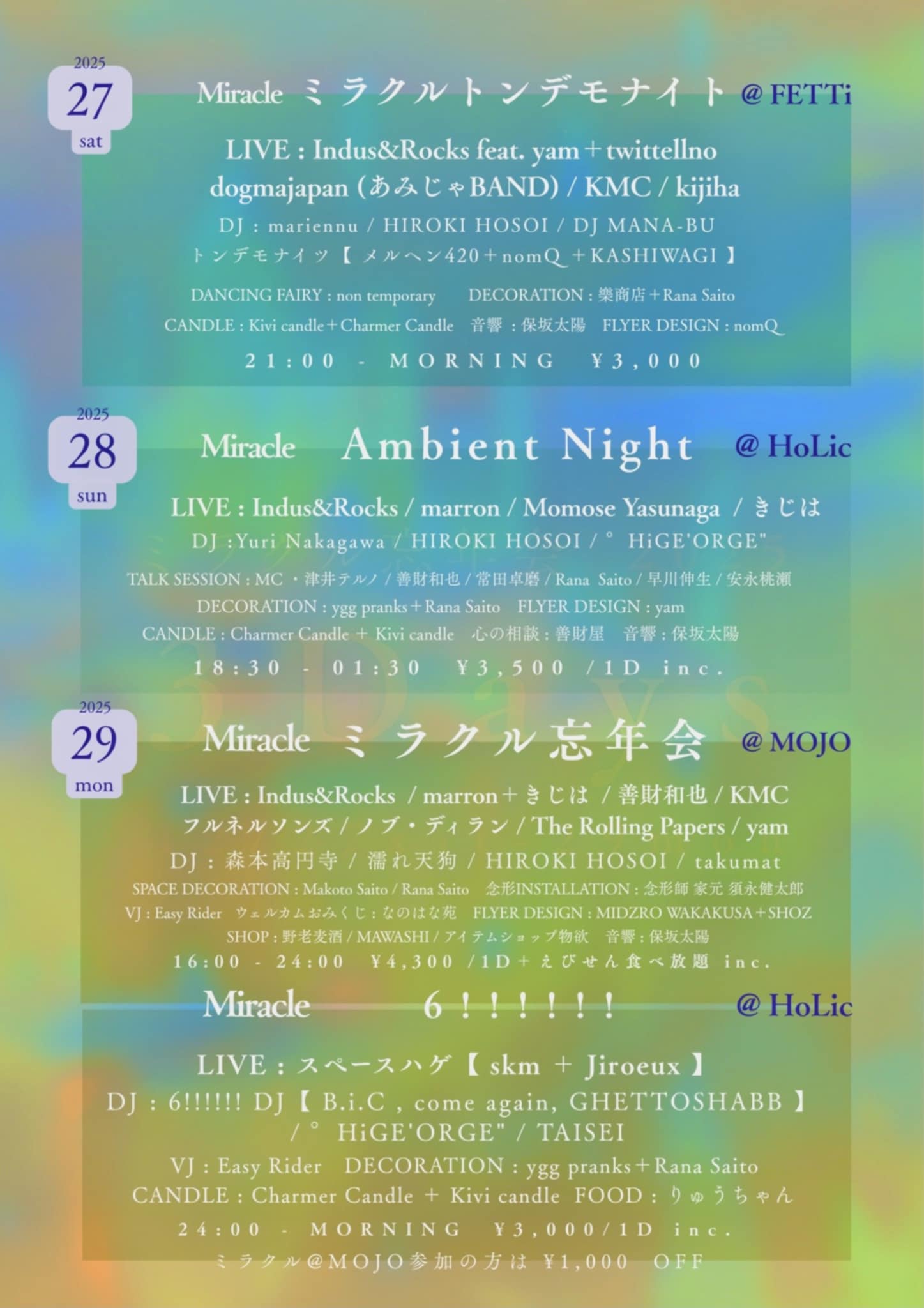 ⭐︎ミラクル@MOJO参加の方は ¥1,000 OFF⭐︎